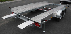 Öppen biltrailer med en lastlängd på 4m utrustad med vinsch och ramper.